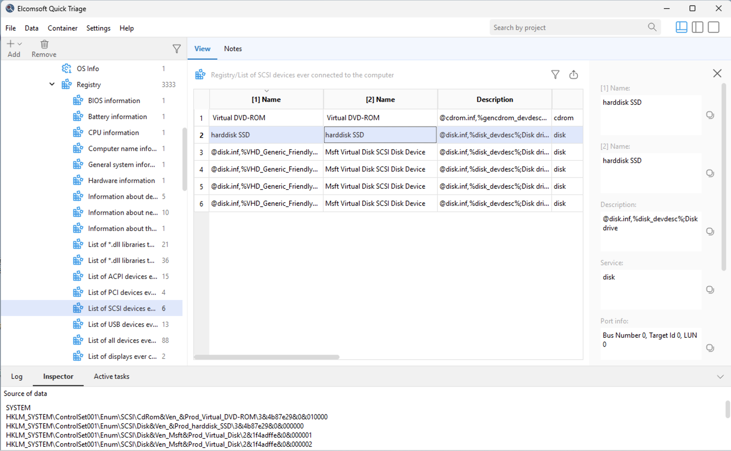 EQT collects system, user, and storage-related data from live Windows systems with an active user session, as well as from externally connected disks and mounted volumes.