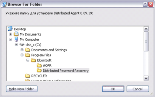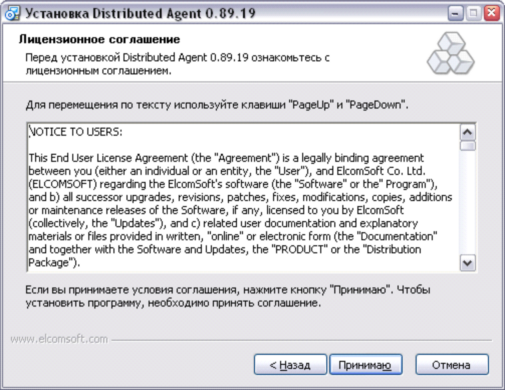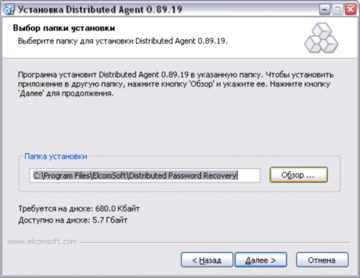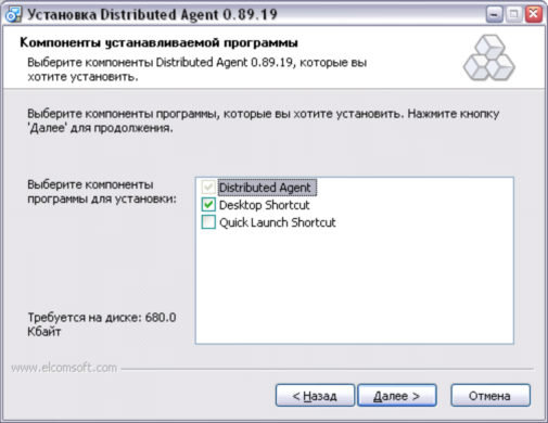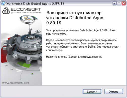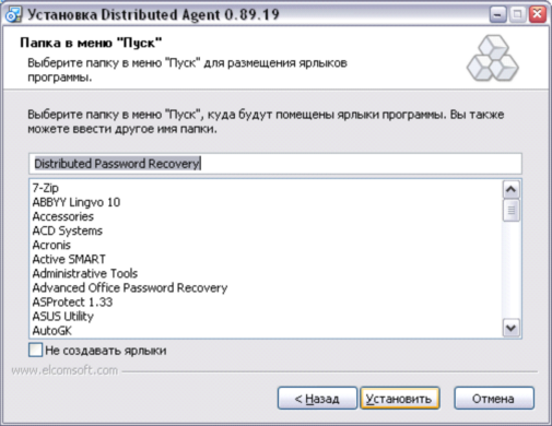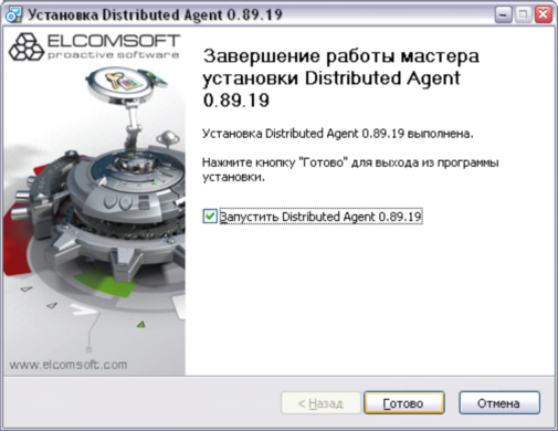 Чтобы установить ElcomSoft Distributed Agent на компьютер: