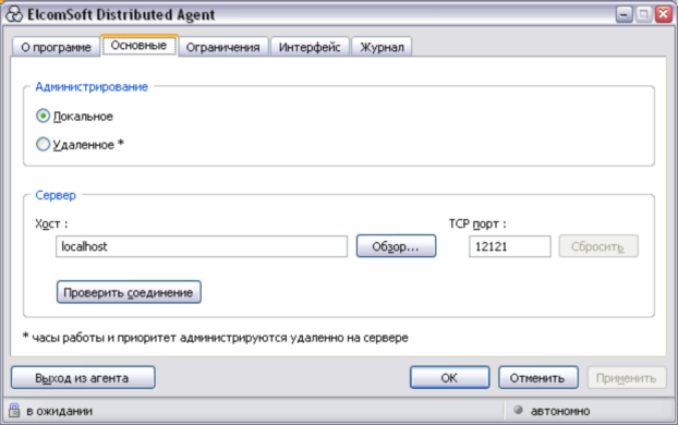 Основные настройки программы расположены в закладке свойств основного диалога программы под названием «Основные». Здесь вы можете увидеть две группы настроек – «Администрирование» и «Сервер», которые будет описаны ниже (рисунок 4.1).